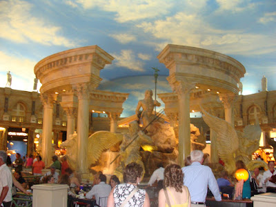 The show was FANTASTIC!! You can't take pictures inside the Colosseum so I don't have any pictures of the great CELINE, but it was kind of nice not to have the pressure of taking pictures. I just rejoiced in the moment. Bayley and I were literally on the edge of our seats the entire time {and our seats were AMAZING} She put on such a great show. I was shaking from excitment the entire time. I just LOVE Celine. After the show John came and met us at Casear's Palace. We walked around for a bit, in search of food. Bayley and I hadn't eaten since breakfast...we were STARVING. We got a burger at the little food court.