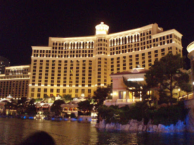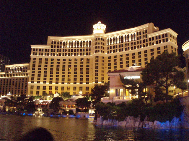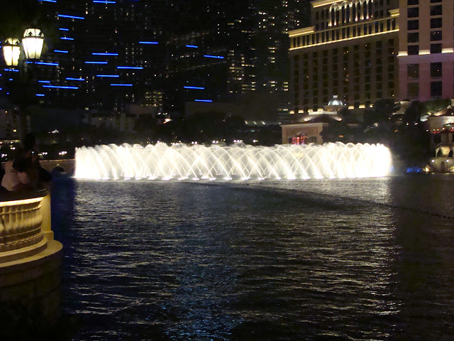 After we ate we walked outside to see some of the city at night. We walked next door to the Bellagio and caught the fountain show. It was beautiful.