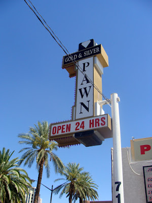 Before we headed out of Vegas we had one last stop to make and that was to Gold & Silver Pawn, which is featured on the show Pawn Stars on the History Channel. John doesn't watch much TV, but he LOVES this show. It was his only request for the road trip. The place has become quite the tourist attraction due to the popularity of the show so you have to stand in line to go in. Since we had Louis someone would need to stay in the car with him and I volunteered since John and Bayley are bigger fans of the show than myself. John got a t-shirt and a magnet. We actually saw a tag from Union County, MS in the parking lot. I had fun watching the people in the parking lot and seeing someone come and get the "Old Man's" car and drive it around back for him.